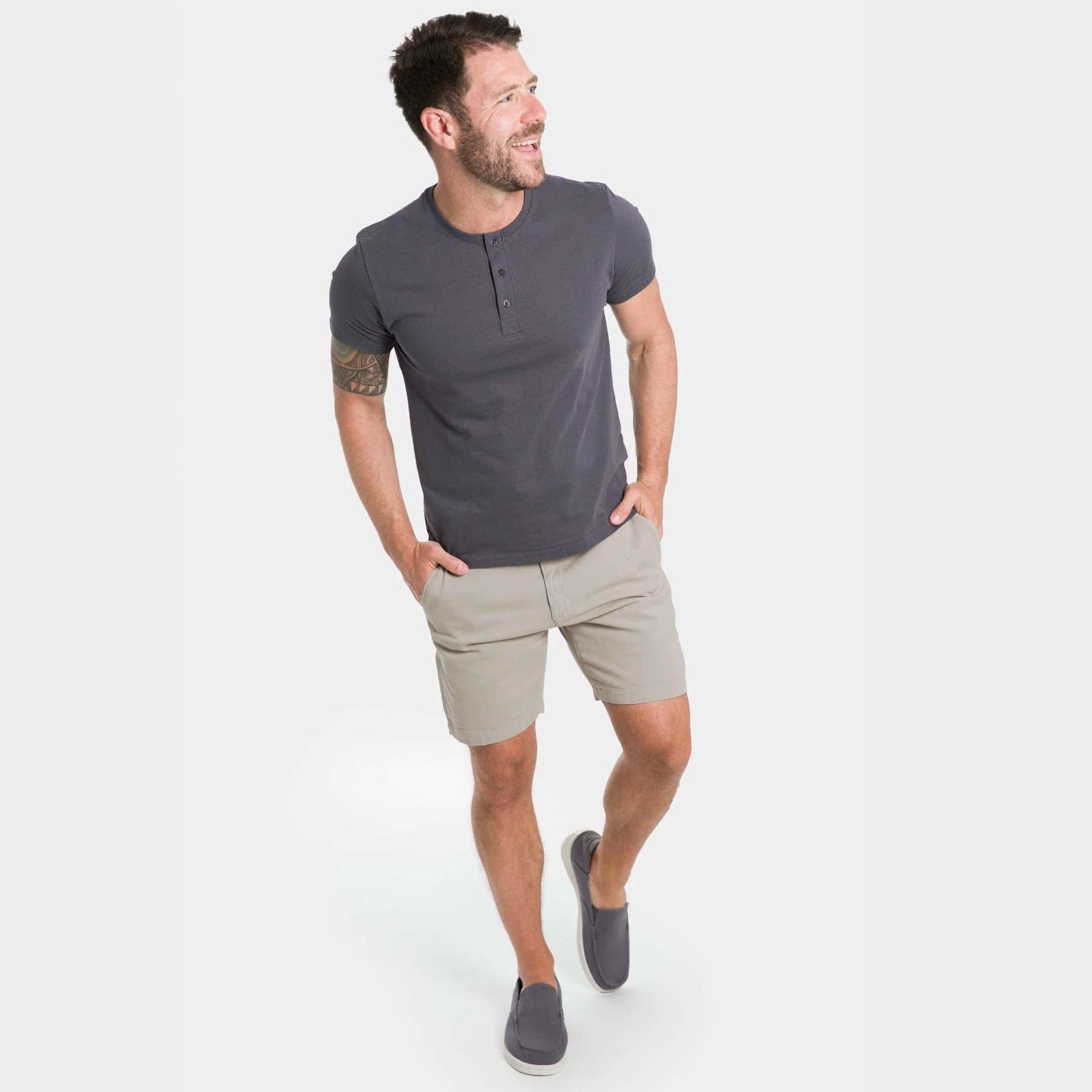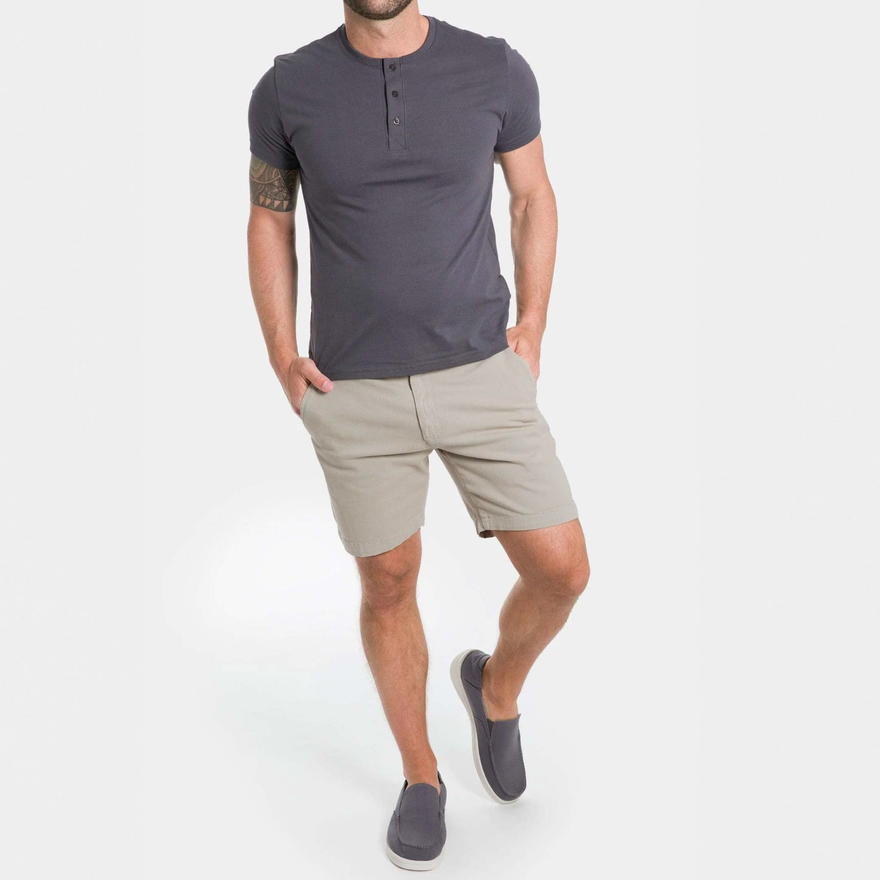 Elevate your warm-weather wardrobe with our classic chino shorts. Featuring a premium washed fabric and crafted with stretch for optimal comfort, these shorts are sure to become your go-to choice for summer.